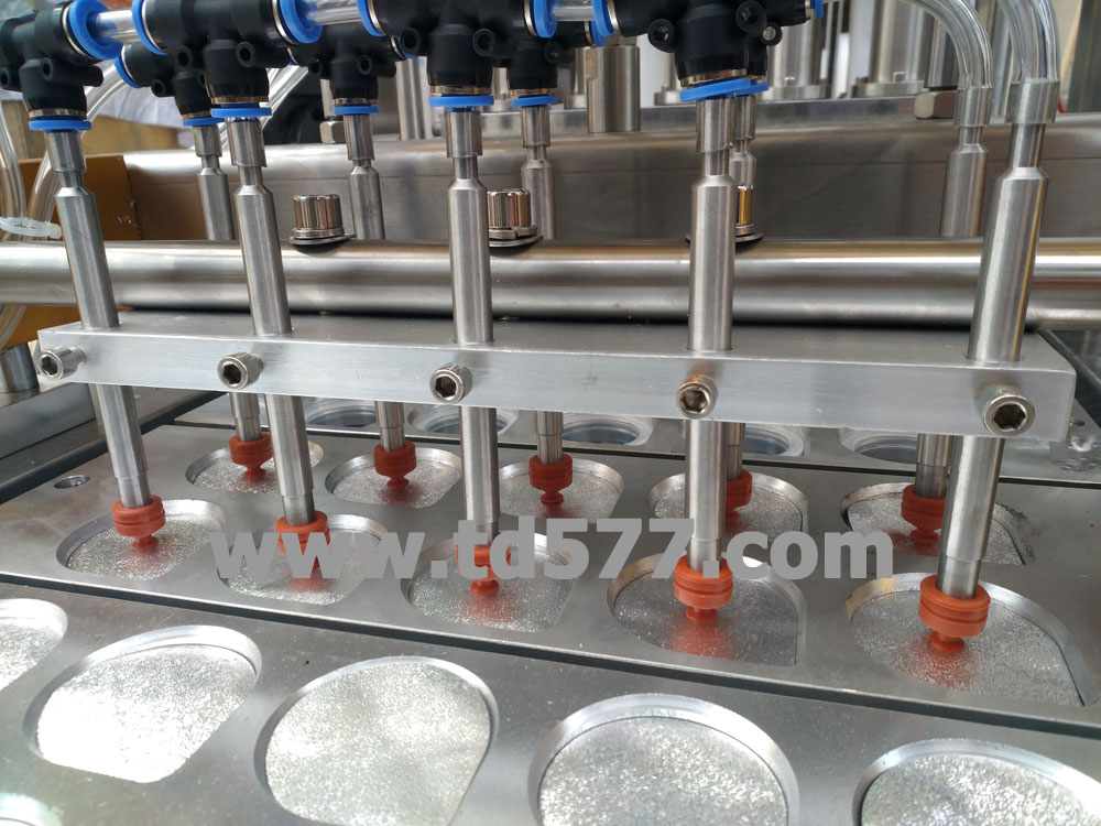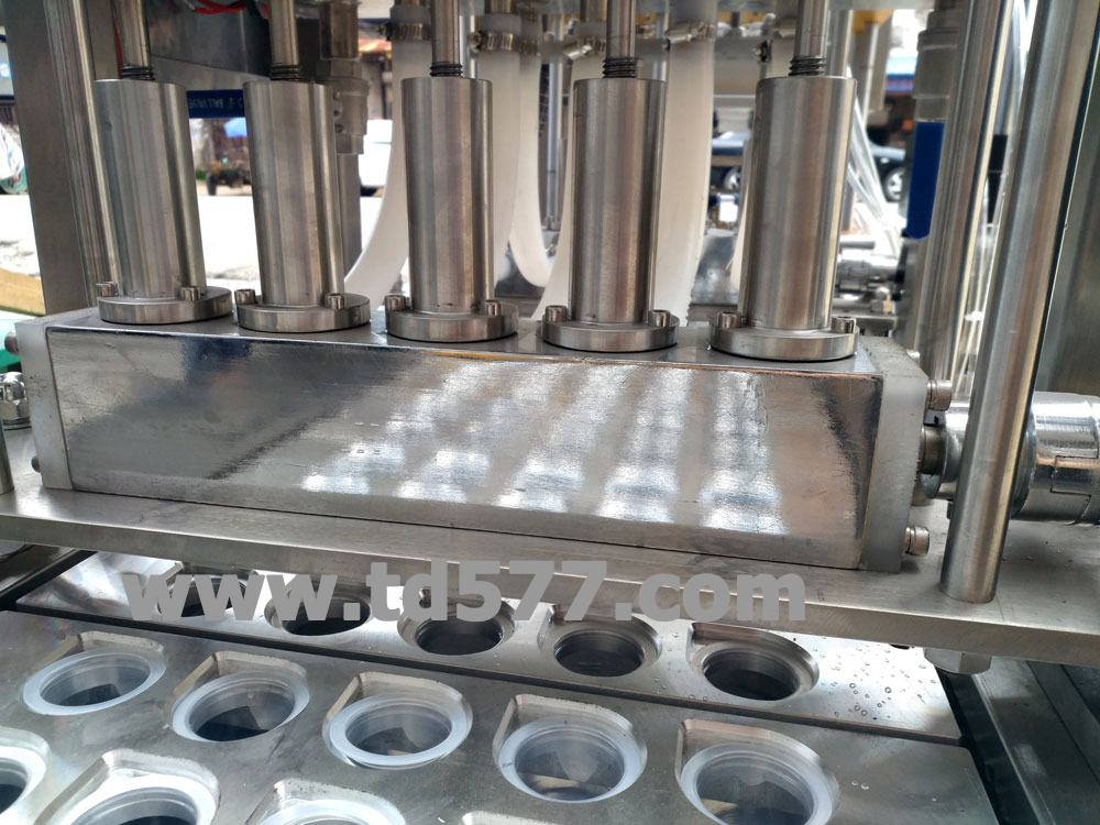 全自動操作,自動完成落杯、灌裝、紫外線殺菌、光電跟蹤、日期打印、封口、切邊等。